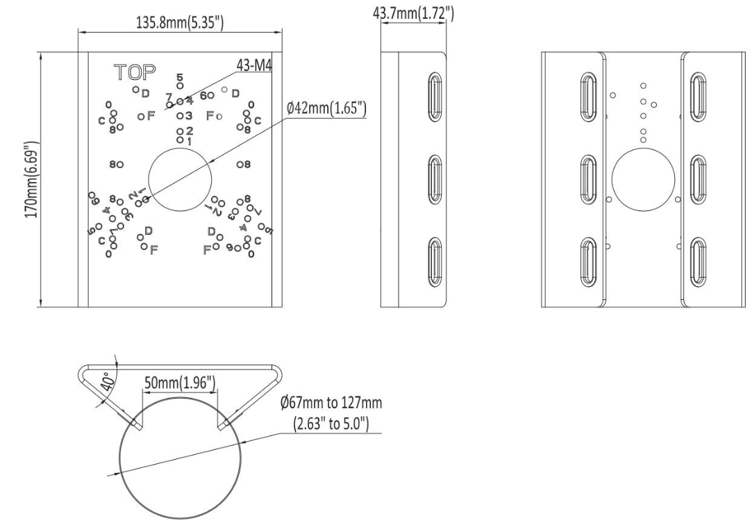 Uchwyt daję możliwość montaż kamery na słupie z możliwością dostosowanie średnicy od 67mm do 127mm.